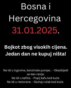 Bojkot zbog rasta cijena: Hoće li 31. januar biti dan kada će građani BiH da progovore? Read More » 25/01/2025