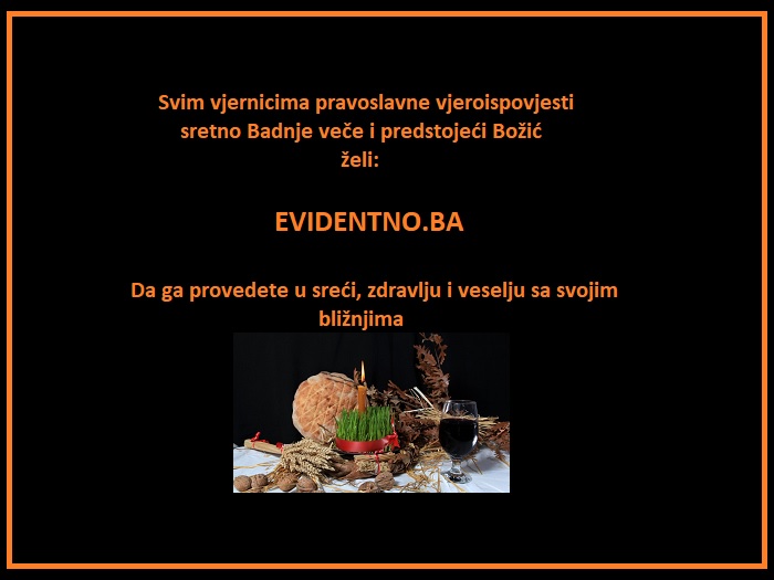 Svim vjernicima pravoslavne vjeroispovjesti diljem svijeta želimo puno sreće, zdravlja i veselja na Badnje veče i za predstojeći Božić.