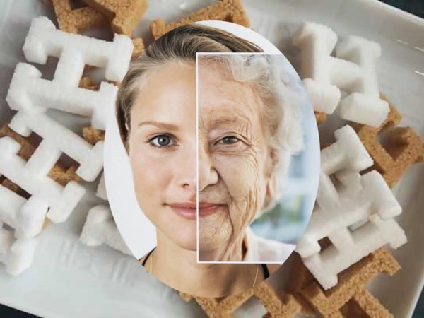 Prekomjerni unos šećera može značajno ubrzati starenje kože i organizma. Naime, šećer može izazvati glikaciju, proces u kojem molekuli šećera reaguju sa proteinima poput kolagena i elastina, koji su odgovorni za čvrstinu i elastičnost kože. Ova reakcija stvara napredne proizvode glikacije (AGEs), koji oštećuju ove proteine, što dovodi do smanjenja elastičnosti kože, pojave bora i opuštenosti.
