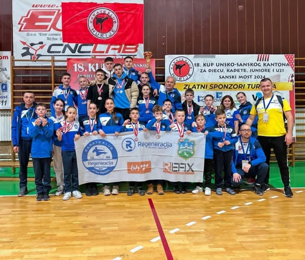 Karate klub “Regeneracija” iz Velike Kladuše završio je 2024. godinu trijumfalno, osvojivši prestižni KUP Unsko-sanskog kantona. Ovaj značajan rezultat ostvaren je na 18. KUP-u USK-a za djecu, kadete, juniore i U21, održanom 21. decembra 2024. godine u Sanskom Mostu. Na turniru je učestvovalo 337 takmičara iz 25 klubova, a “Regeneracija” se istakla kao najbolji klub na takmičenju.