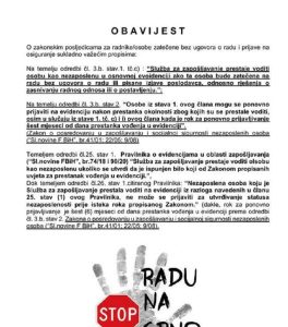Također su naveli i kada i pod kojim okolnostima se osoba uklanja sa evidencije nezaposlenih lica Službe za zapošljavanje.