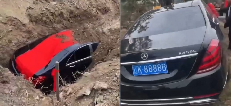 Na jednoj sahrani u Kini zabilježen je prizor u kojem je skupocjeni Mercedes sa rijetkim registarskim tablicama zakopan kao dio posljednje želje pokojnika.