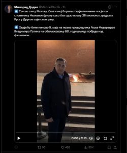 Predsjednik RS Milorad Dodik oglasio se večeras na društvenim mrežama gdje je podijelio snimak iz Moskve.