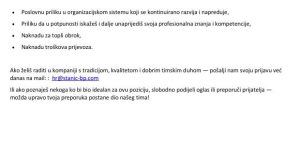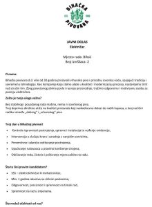 ”Bihaćka pivovara” d.d. Bihać raspisuje konkurs za prijem u radni odnos na poziciji: