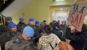 Oni su uzvikivali “Jel’ vas sram” te traže da premijer Kantona Sarajevo Nihad Uk da izađe kako bi mu prenijeli poruku te poručuju da mu “neće ništa”.