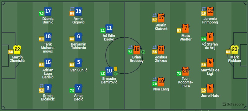 Džeko je šutirao iz dobre pozicije, ali ga je Flekken zaustavio te je lopta stigla do Demirovića koji glavom pogađa za poravnanje.