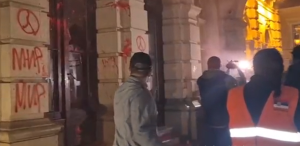 U međuvremenu su protesti eskalirali te se pojavila vatra na prvom spratu Gradske kuće na koju jke prethodno bacana crvena boja te su maskirani muškarci pokušali nasilno da uđu unutar objekta.