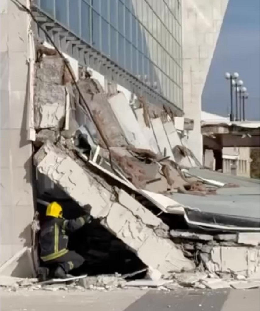 Na terenu su ekipe Hitne pomoći i vatrogasci, a stigle su i radne mašine kako bi uklonile srušenu nadstrešnicu.